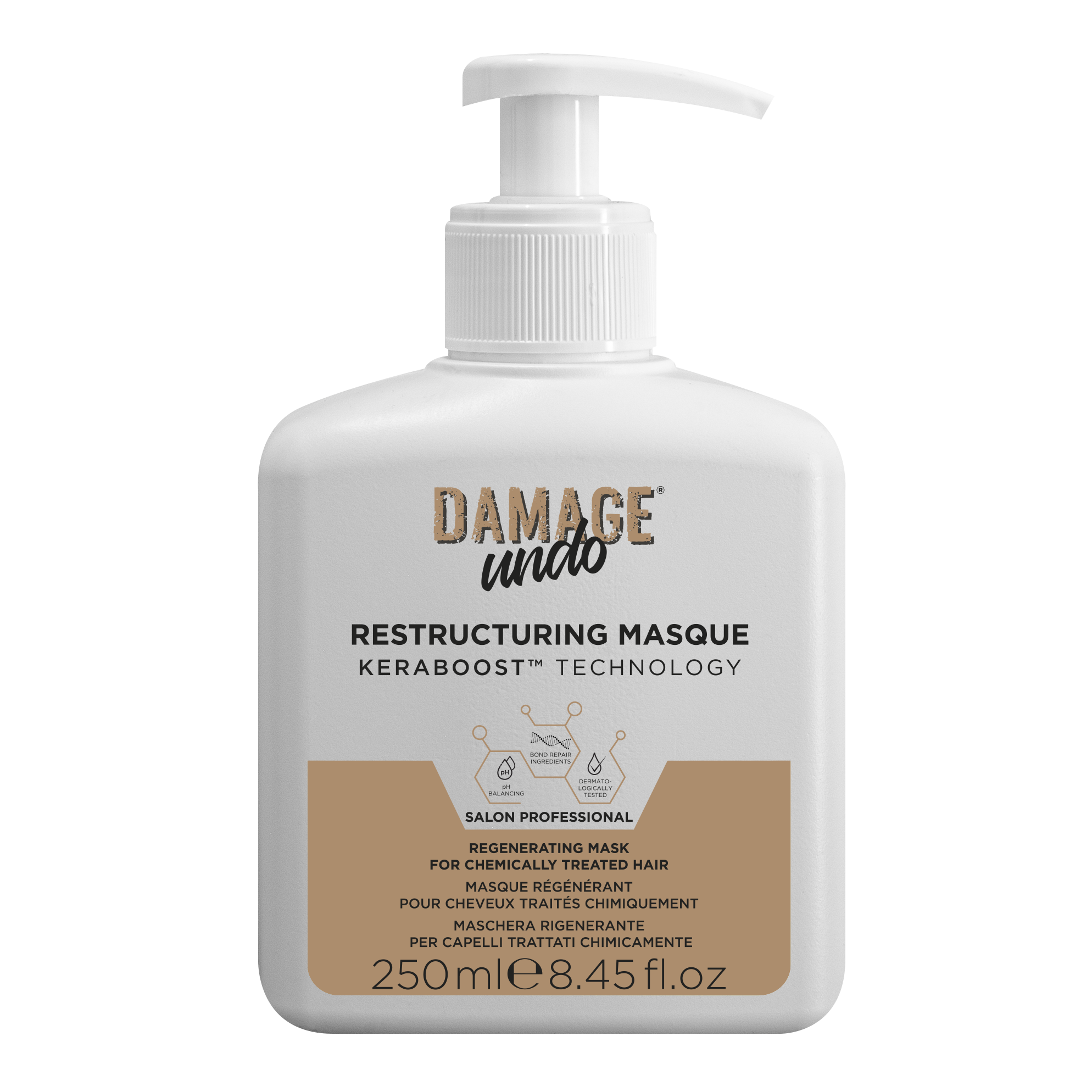 La linea Damage Undo si basa su una tecnologia brevettata, KERABOOST, che è in grado di ripristinare l’equilibrio fisiologico interno ed esterno del capello.